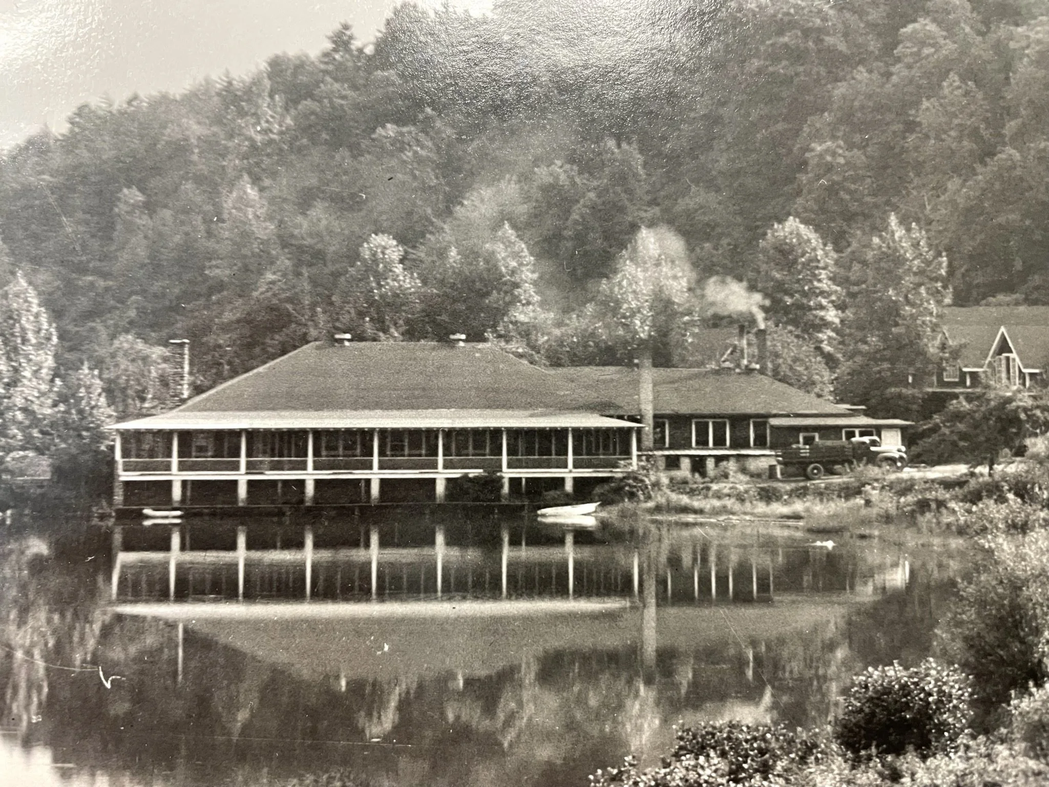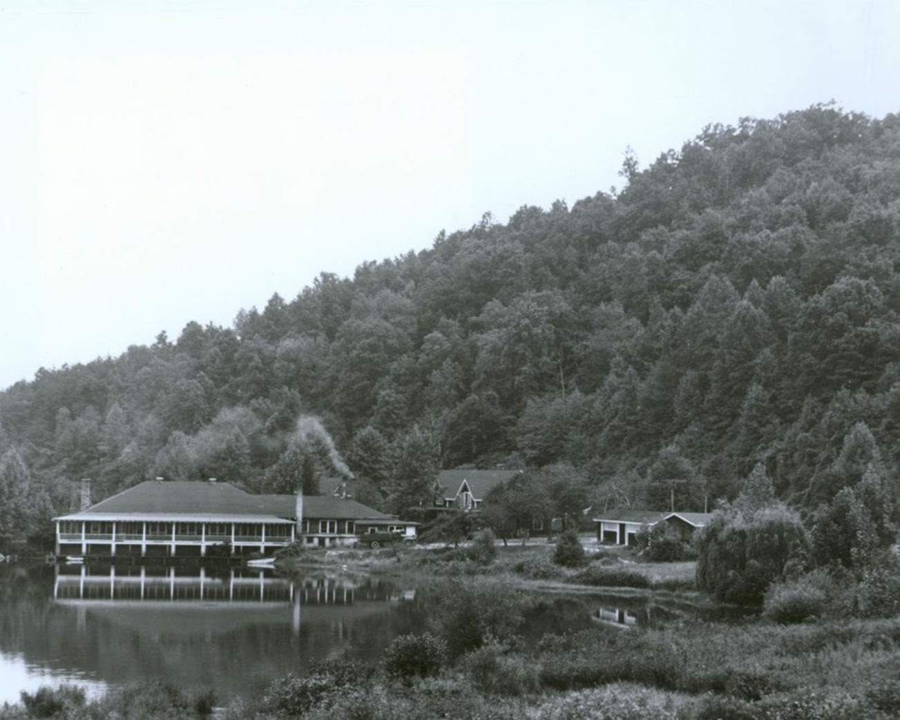 The Black Mountain College Historic District, listed in the National Register of Historic Places, contains buildings and landscapes representing multiple periods of development. Built in the 1920s by Asheville developer E.W. Grove as a retreat at Lake Eden, the property became home in 1940 to Black Mountain College, an experimental community advancing innovative ideas in the arts and architecture, led by nationally recognized architects, performers, and painters. After the College closed in 1956, the site became Camp Rockmont, a Christian summer camp for boys, which continues today. Eden Hall, the 1923 dining hall on Lake Eden, serves as the camp’s dining room, its original function, and is a key contributing building in the district.